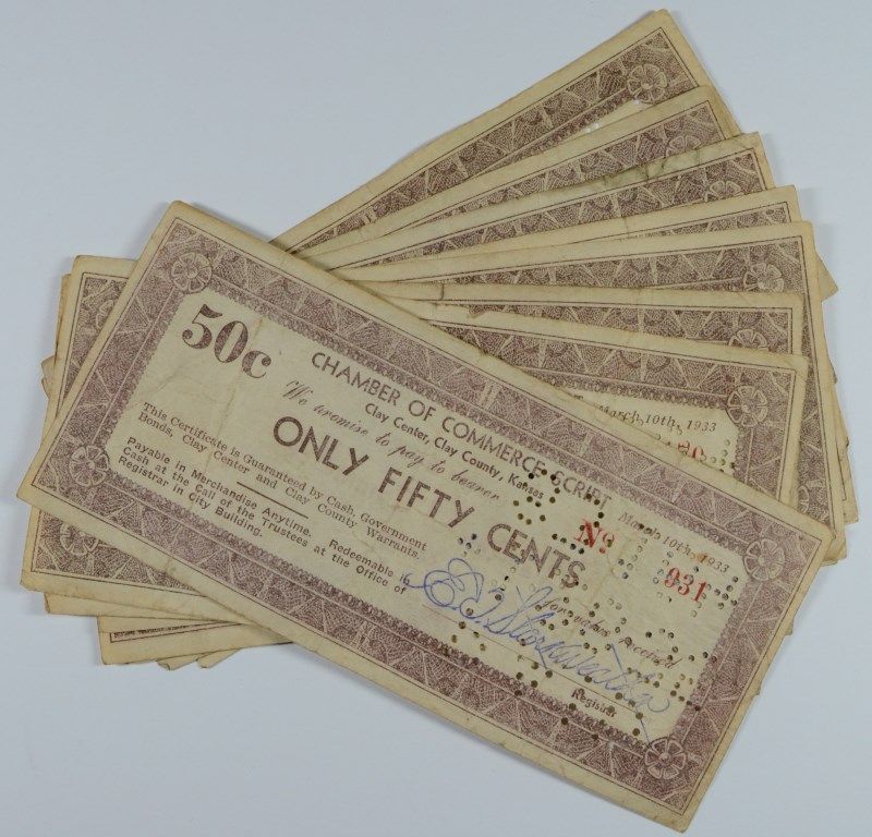 1933 DEPRESSION SCRIPT (CLAY COUNTY, KANSAS) FIFTY CENTS