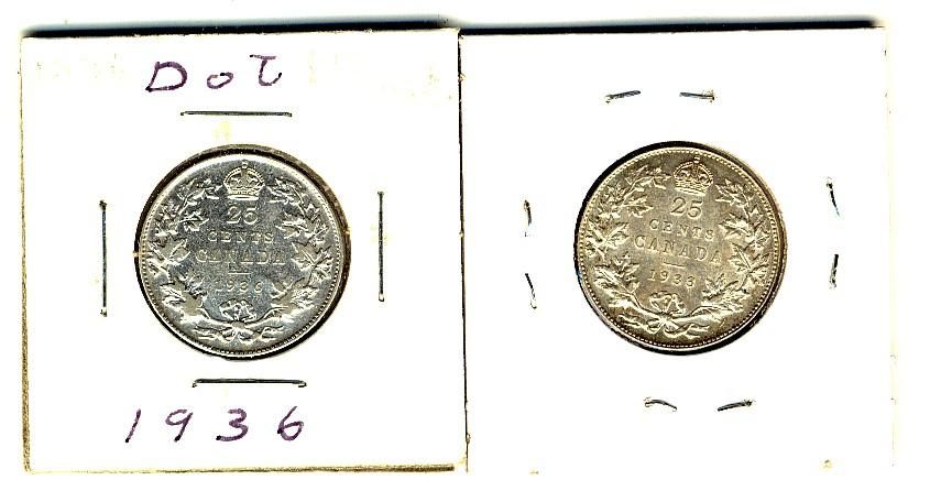 1933 EF-40 25¢,1936 Dot 25¢ F-12, two nice coins.