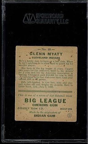 1933 Goudey #10 Glenn Myatt SGC 3 (40 Very Good)