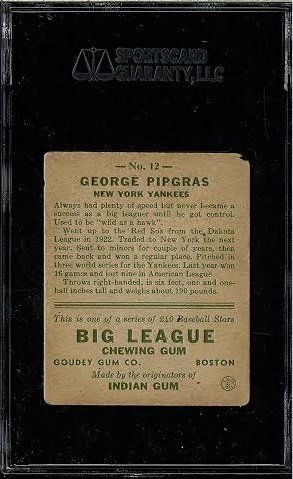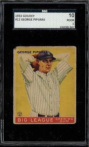 1933 Goudey #12 Geo Pipgras SGC 1 (10 Poor)
