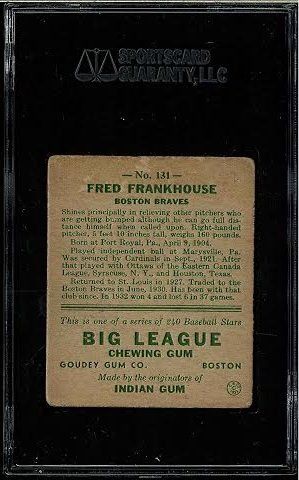 1933 Goudey #131 Fred Frankhouse SGC 1 (10 Poor)