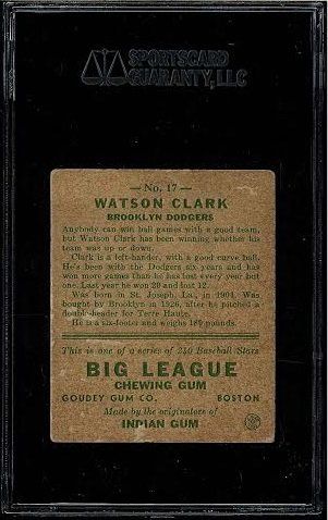 1933 Goudey #17 Watson Clark SGC 1 (10 Poor)