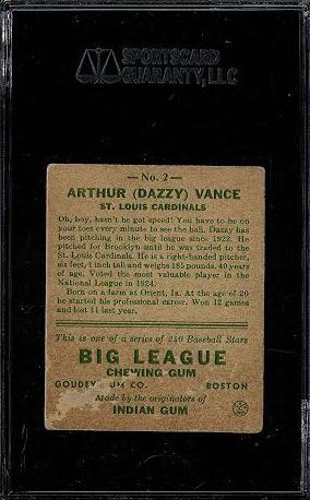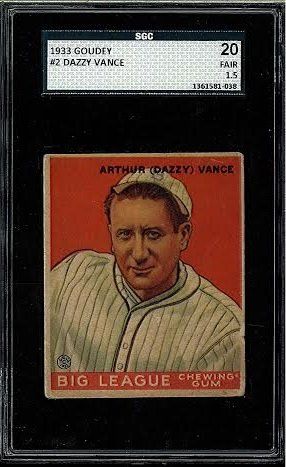 1933 Goudey #2 A.C. Dazzy Vance SGC 1.5 (20 Fair)