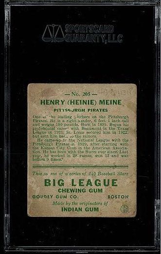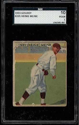 1933 Goudey #205 Heinie Meine Card SGC 1 (10 Poor)