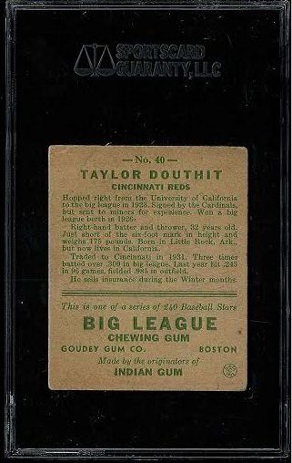 1933 Goudey #40 Taylor Douthit SGC Grade 3 (40 Very Good)