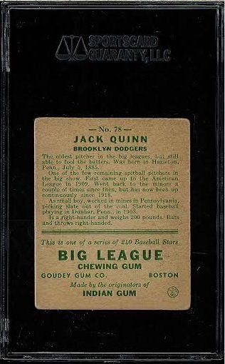 1933 Goudey #78 Jack Quinn SGC 3.5 (45 Very Good)