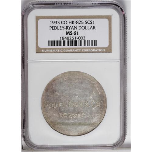 1933 HK-825 Pedley-Ryan Dollar, Type IV, MS61 NGC.Pdedl