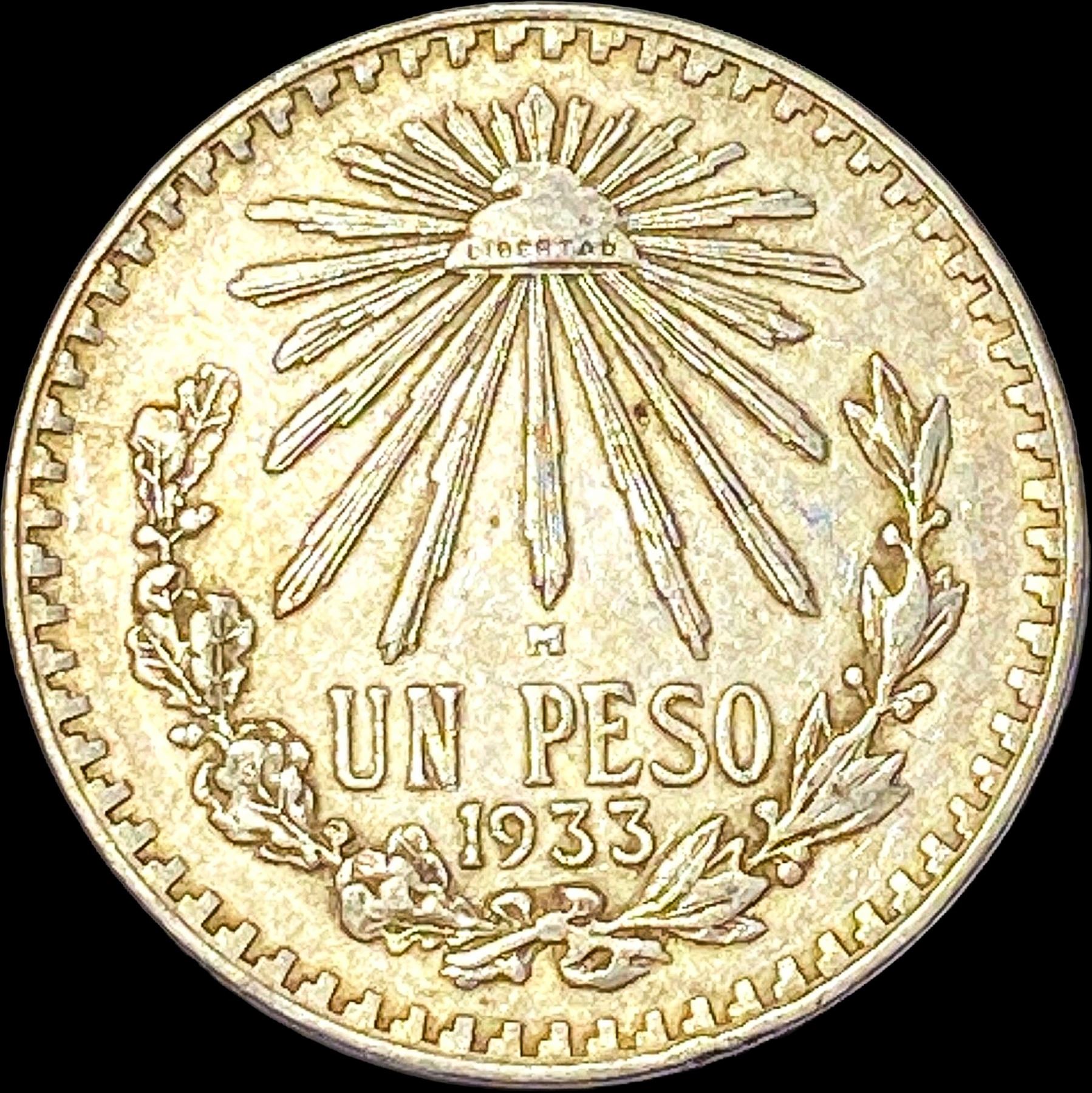 1933-M Mexico Silver Peso CLOSELY UNCIRCULATED