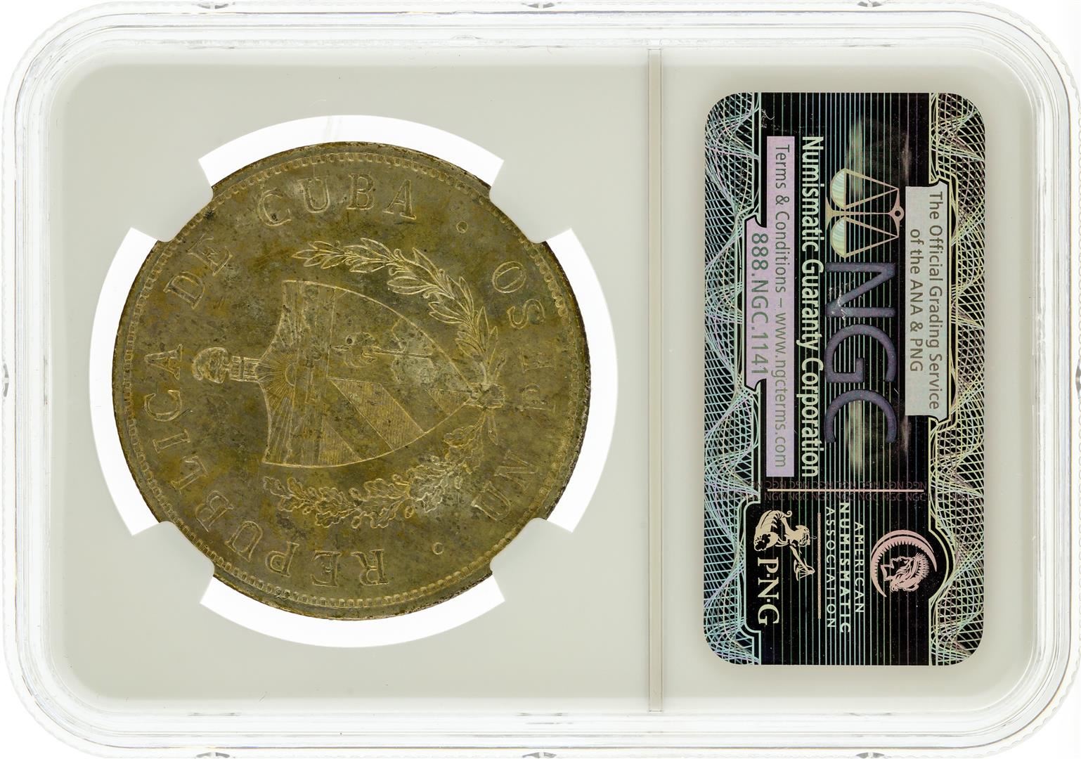 One 1933 NGC MS62 Cuba Peso. NGC Certified.