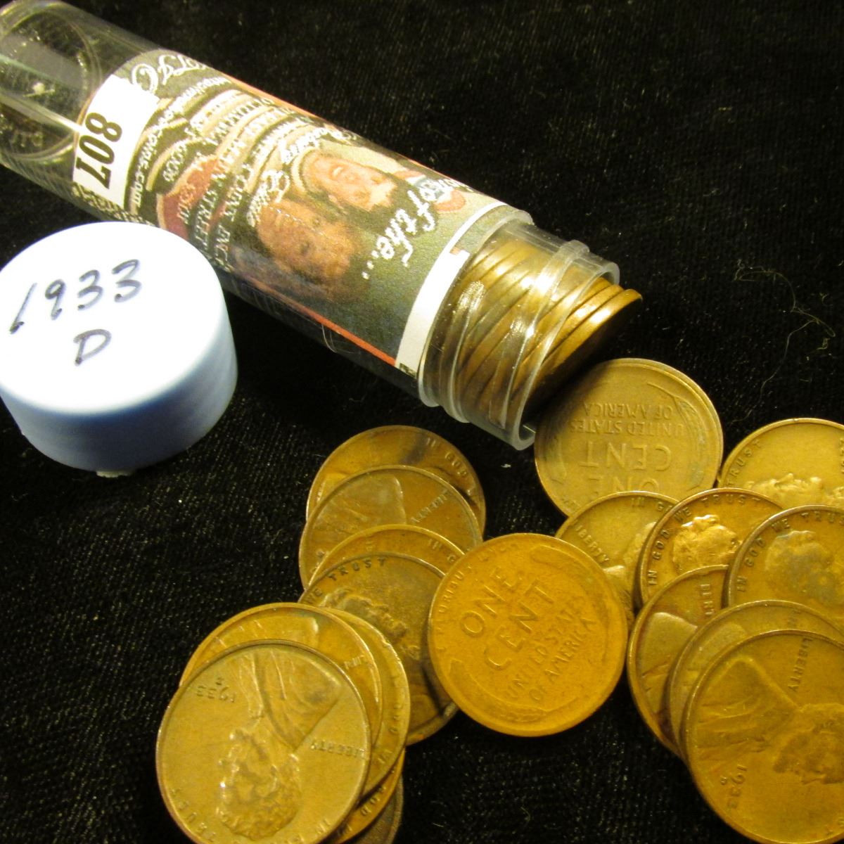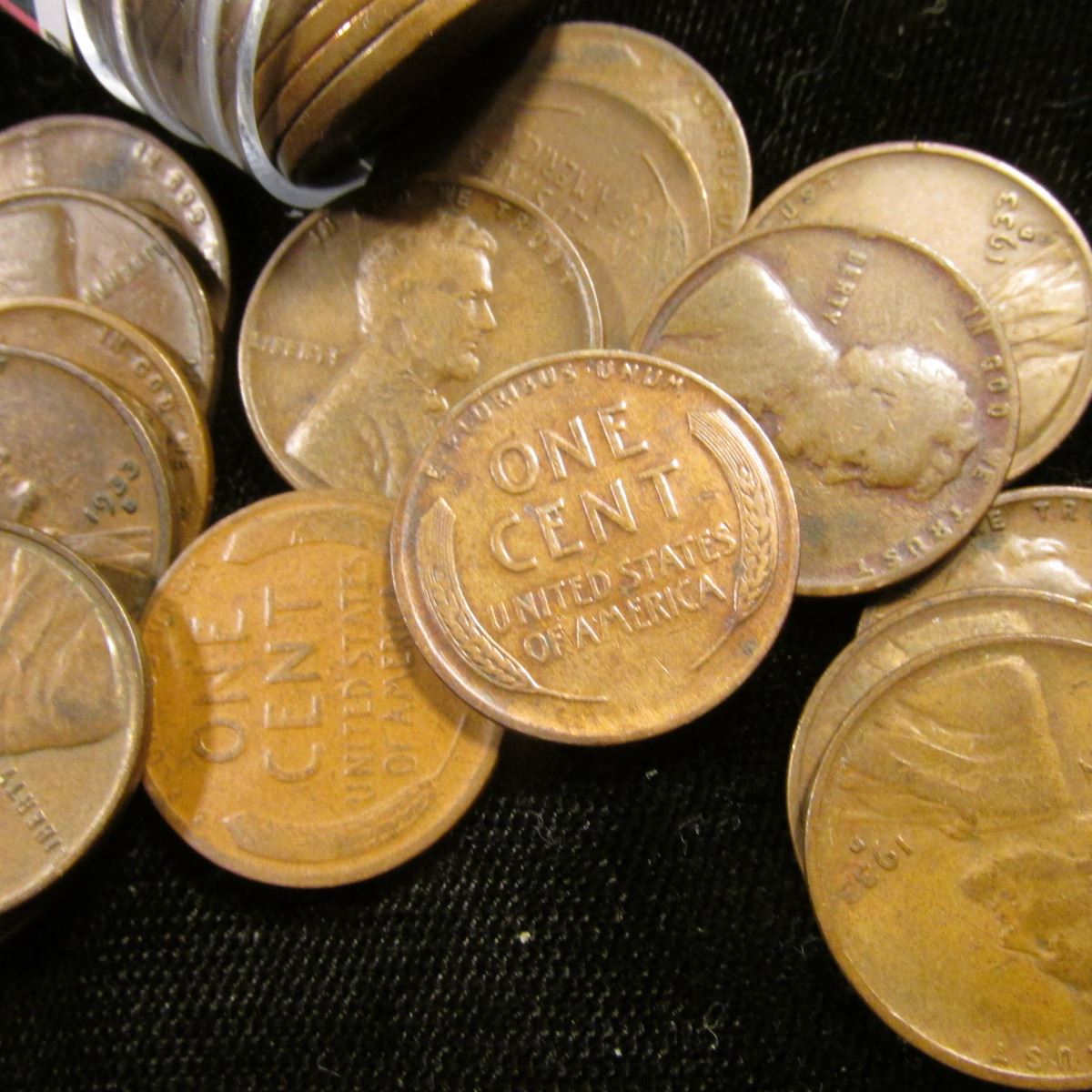 1933 P Solid-date Roll of Lincoln Cents (more than 50 pcs.) Many grade up to VF.