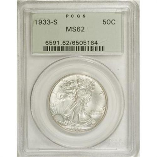 <B>1933-S 50C MS62 PCGS.</B></I> The 1933-S was the first half dollar issue in four years, and with under 2 million examples produced, it was the last issue before 1934 provided a turning point for the series with its higher-mintage issues. The strongly lustrous obverse of this solidly struck piece is largely untoned, though a large portion of the upper reverse has gold-orange patina.<BR><BR><b>Shipping:</b> Coins & Currency (<a target="_blank" href="http://www.heritageauctions.com/common/shipping.php">view shipping information</a>)