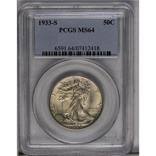 <B>1933-S<50C> MS64 PCGS.</B></I> This sharply struck and highly lustrous Walker is overlain with a thin veneer of champagne-gold color. Minor luster grazes are visible in the right obverse and left reverse fields.