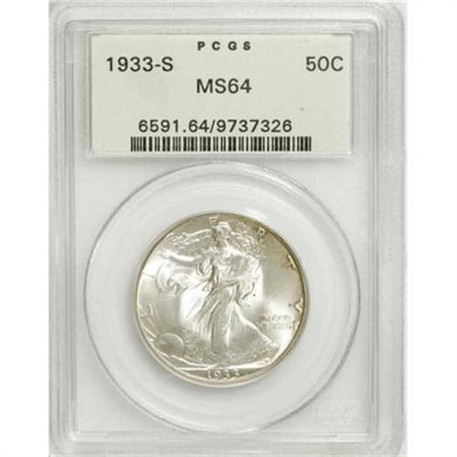 <B>1933-S 50C MS64 PCGS.</B></I> A delightful, predominantly silver-gray S-mint half that offers an intriguing blend of satin and frost. Well-defined by the standards of the issue with few marks for the grade.<BR><I>From The Parker Lee III Collection.</B></I><BR><BR><B>Coin Engraver:</B> Adolph A. Weinman<BR><BR><b>Shipping:</b> Coins & Currency (<a target="_blank" href="http://www.heritageauctions.com/common/shipping.php">view shipping information</a>)