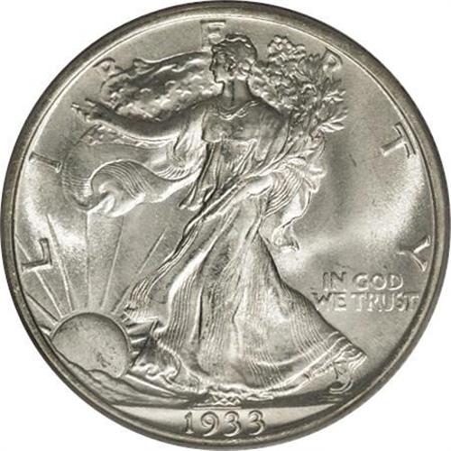 <B>1933-S<50C> MS65 PCGS.</B></I> The '33-S is the last issue among the early dates in the Walking Liberty series. It is also one of the few early dates that can be found with strong striking details. This is a sharply defined example that is brilliant and highly lustrous. Perhaps the most attractive feature, though, is the smooth, unblemished hip area on Liberty. A couple of tiny contact marks can be found on the reverse, but overall, this coin has the appearance of an even higher grade.