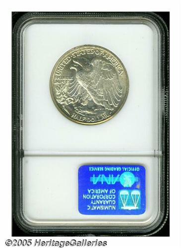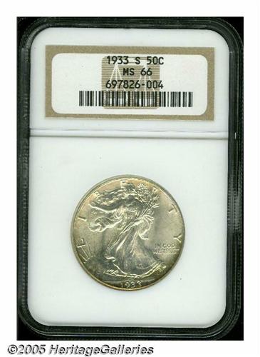 <B>1933-S<50C> MS66 NGC.</B></I> The 1933-S is one of the best struck issues in the early Walking Liberty Half Dollar series, and the present Gem does not disappoint. This is a mostly frosty textured example that reveals a light amount of reddish-golden iridescence at the lower portion of the obverse. There are no abrasions that would call into question the assigned grade.