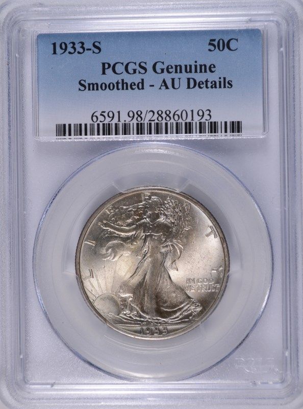 1933-S WALKING LIBERTY HALF DOLLAR, PCGS AU CLEANED