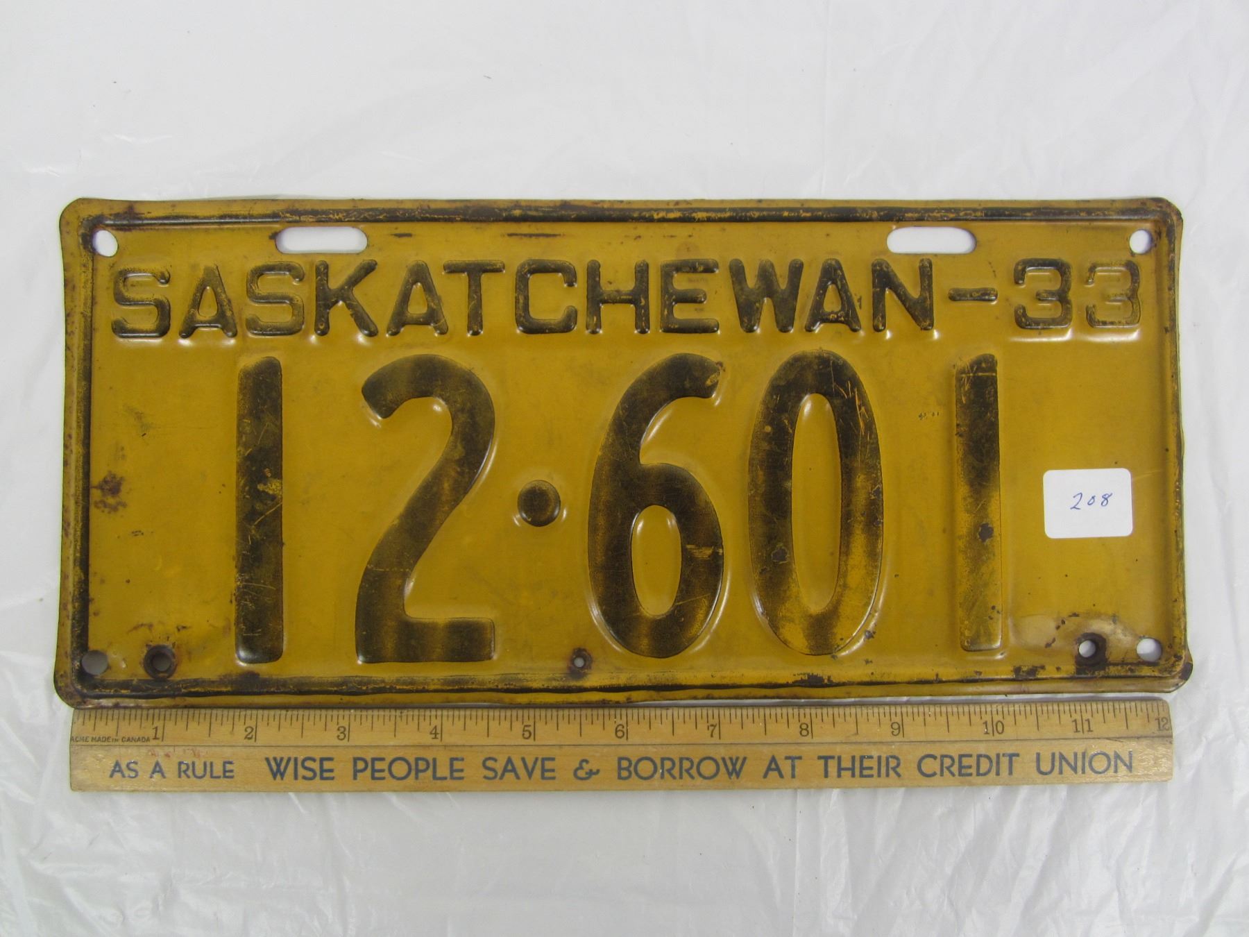 1933 Saskatchewan License Plate