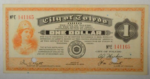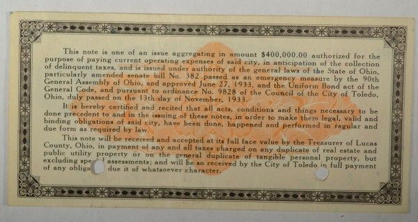 ISSUED BASED ON THE ANTICIPATED COLLECTION OF DELINQUENT TAXES, MONEY TO BE USED FOR GENERAL OPERATING EXPENSES, VF CONDITION EST.$40.00 TO $50.00