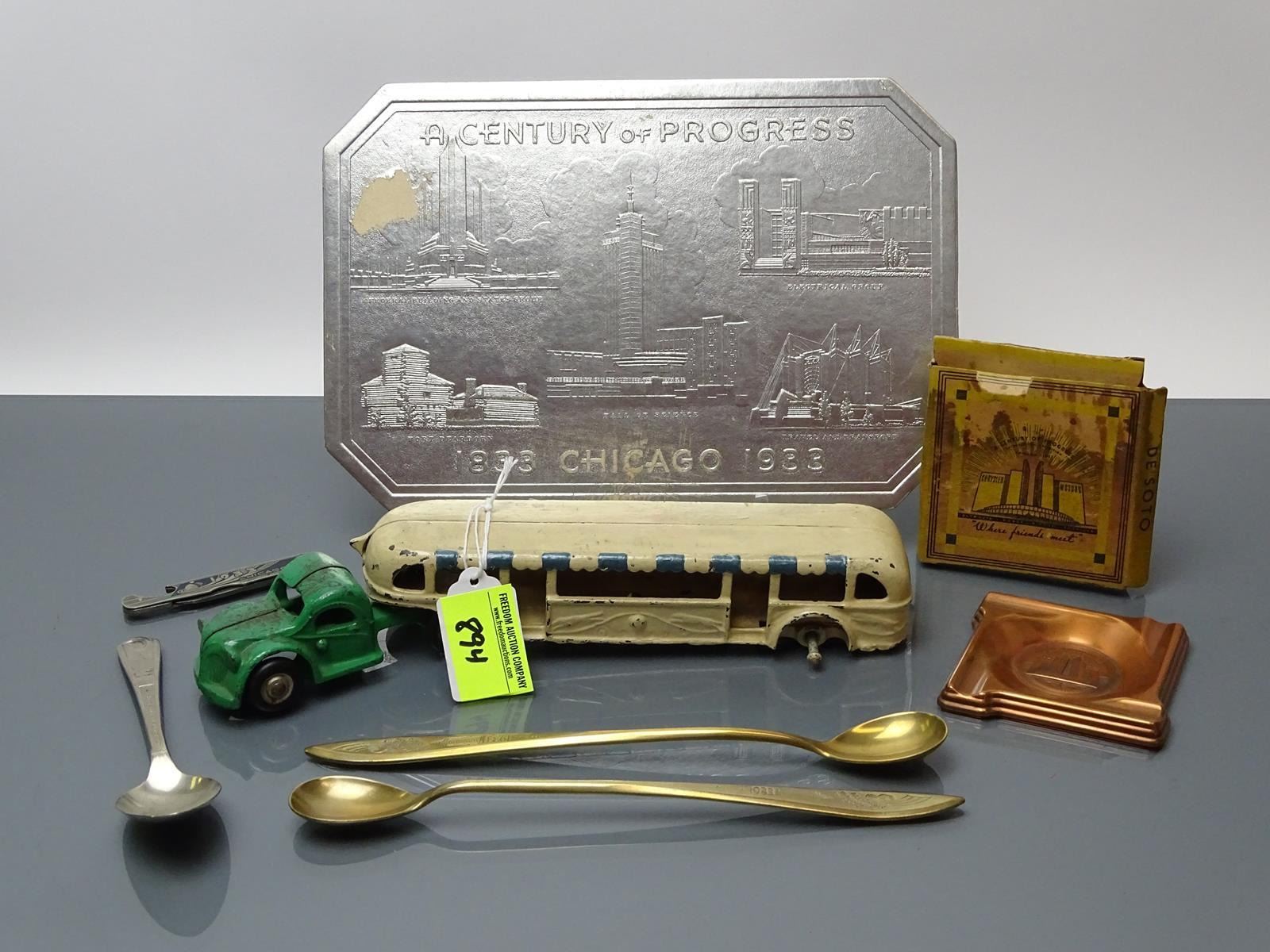 INCLUDES CAST IRON HAULER, CHARGER, SPOONS, PEN KNIFE AND ASHTRAY.