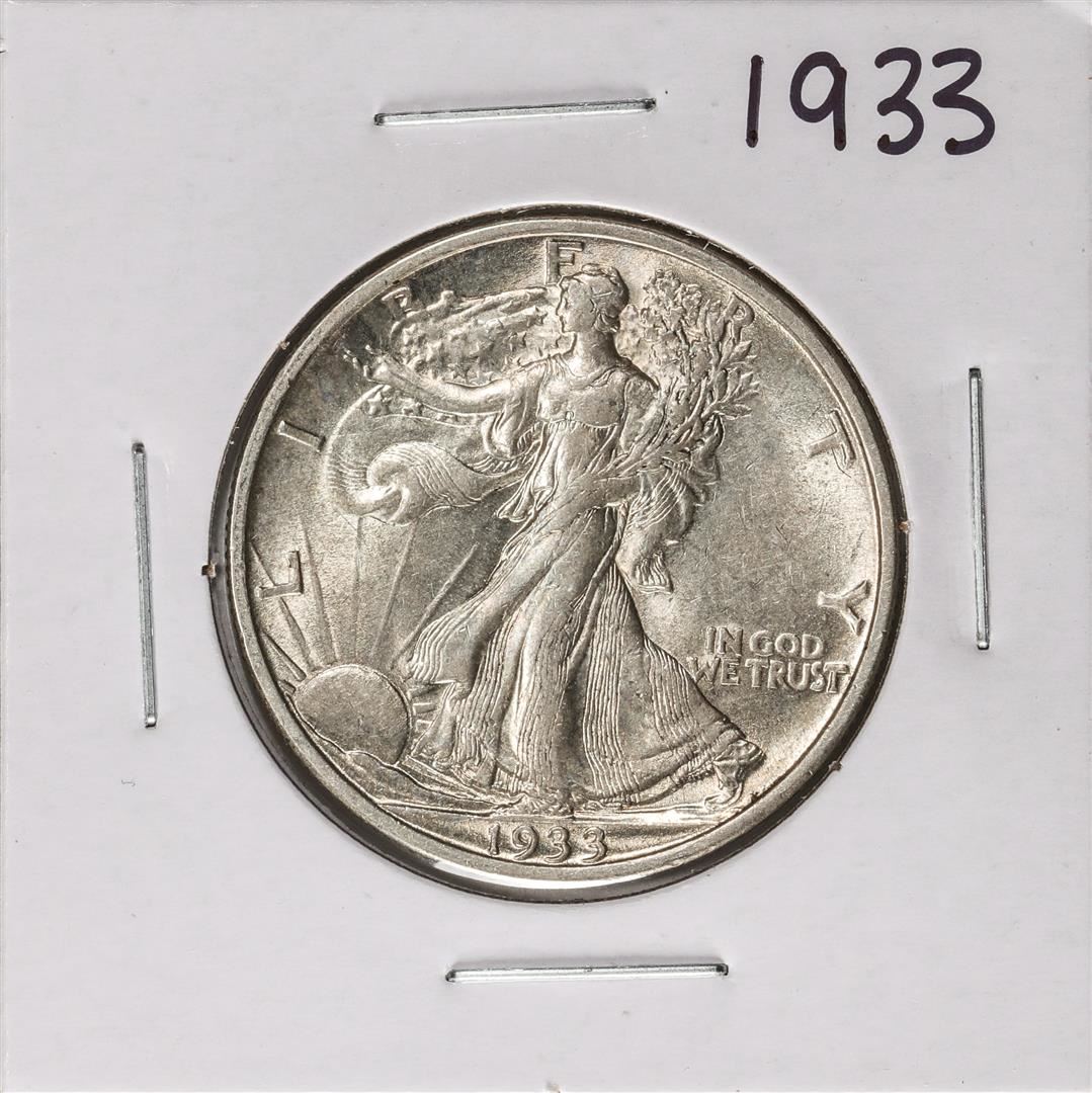 One 1933 Walking Liberty Half Dollar Coin.