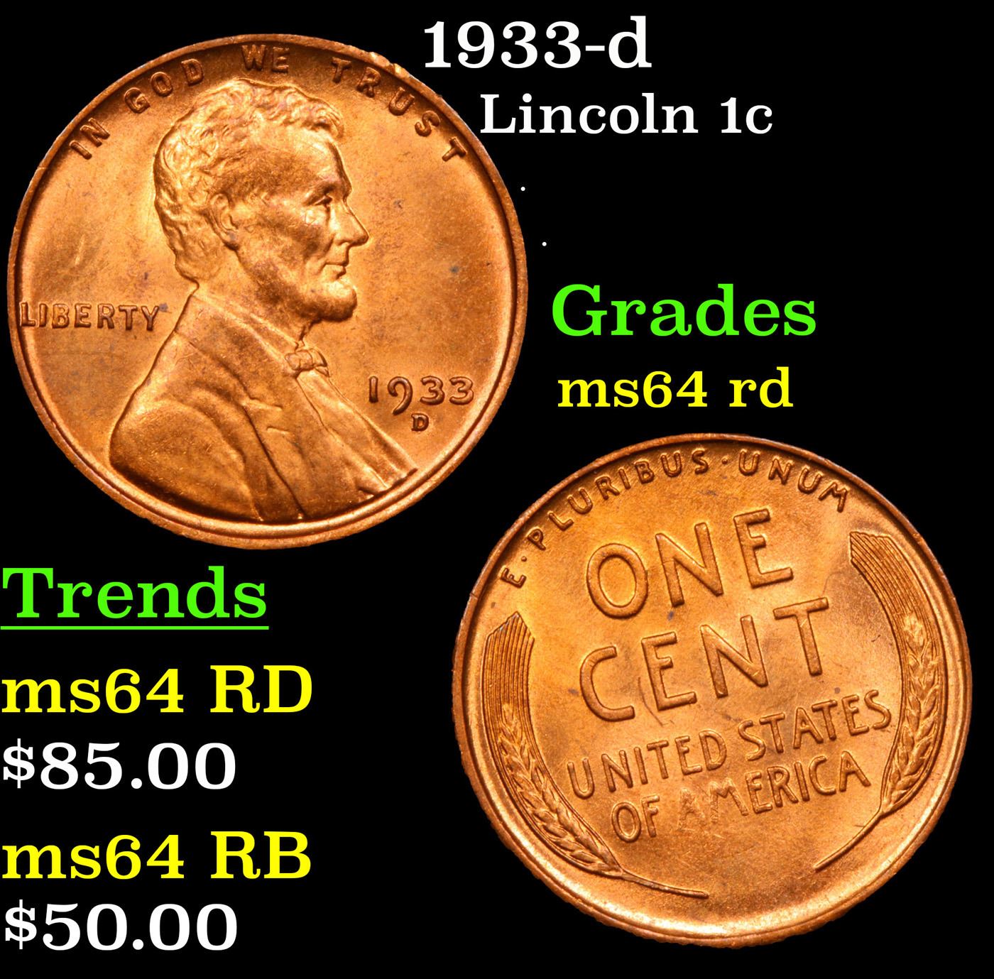 1933-d Lincoln Cent 1c Grades Choice Unc RD.