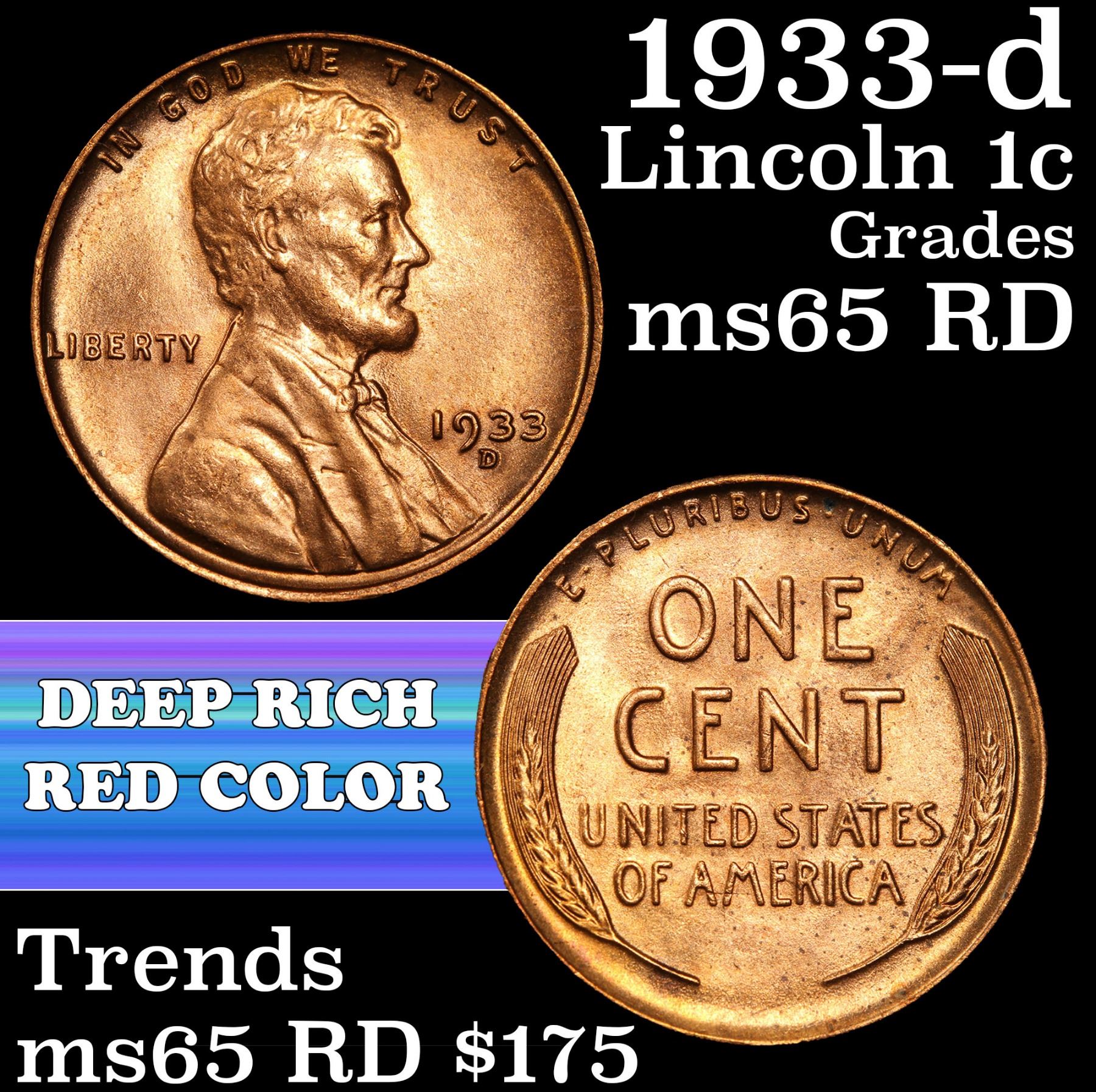 1933-d Lincoln Cent 1c Grades GEM Unc RD.