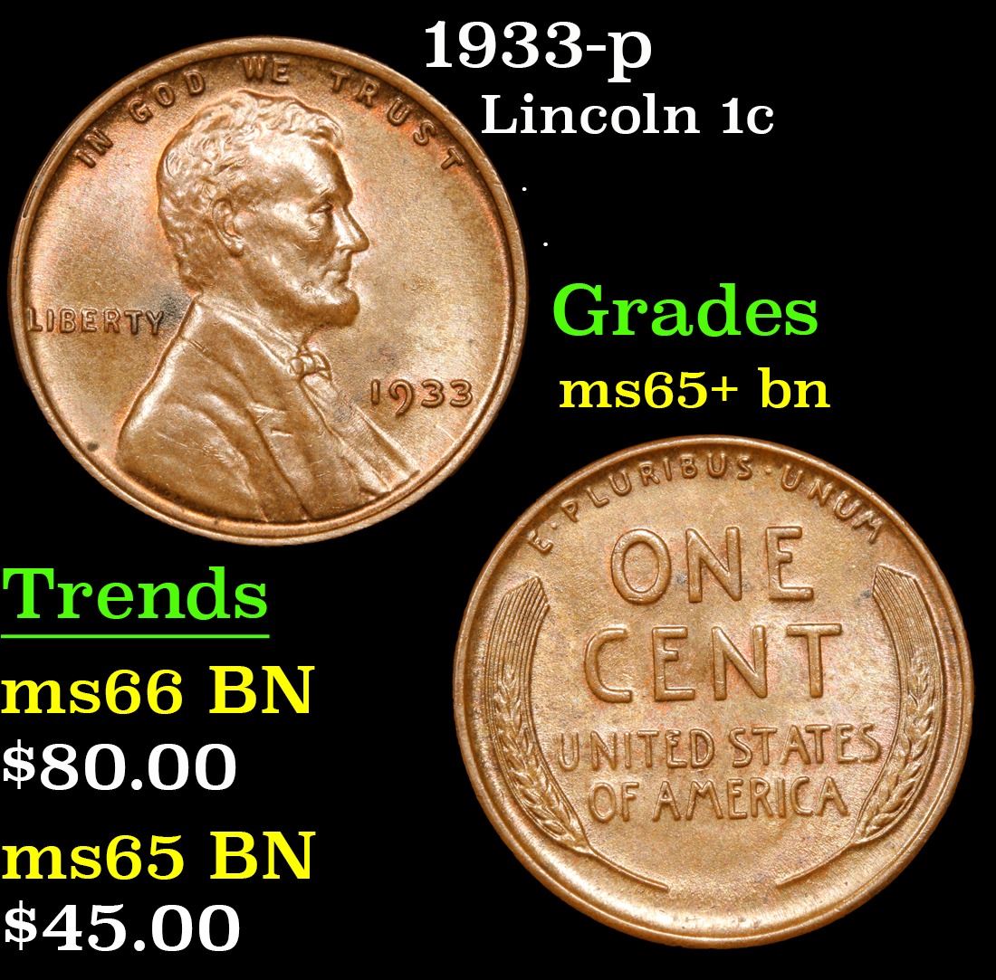 1933-p Lincoln Cent 1c Grades GEM+ Unc BN.