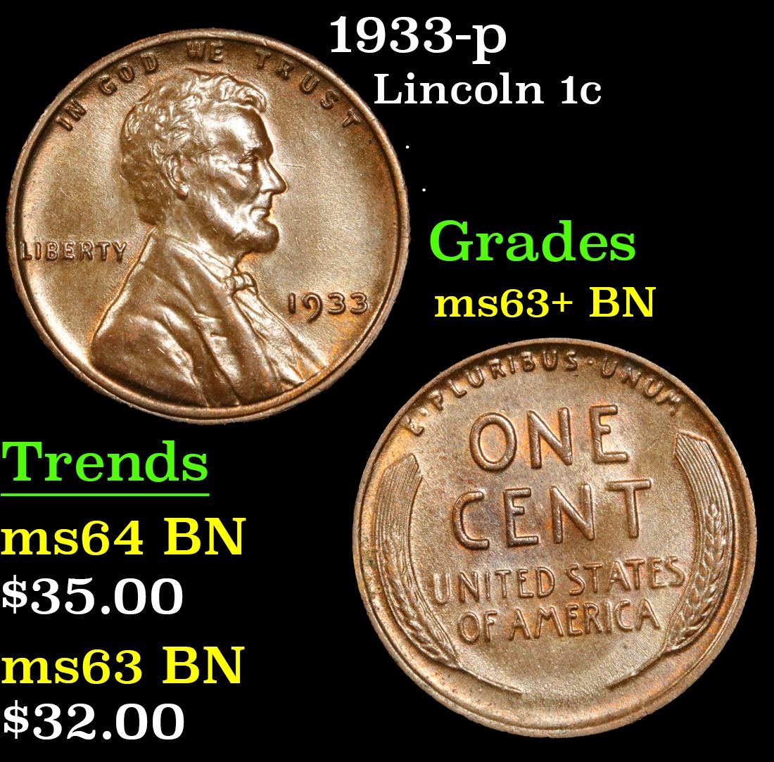 1933-p Lincoln Cent 1c Grades Select+ Unc BN.