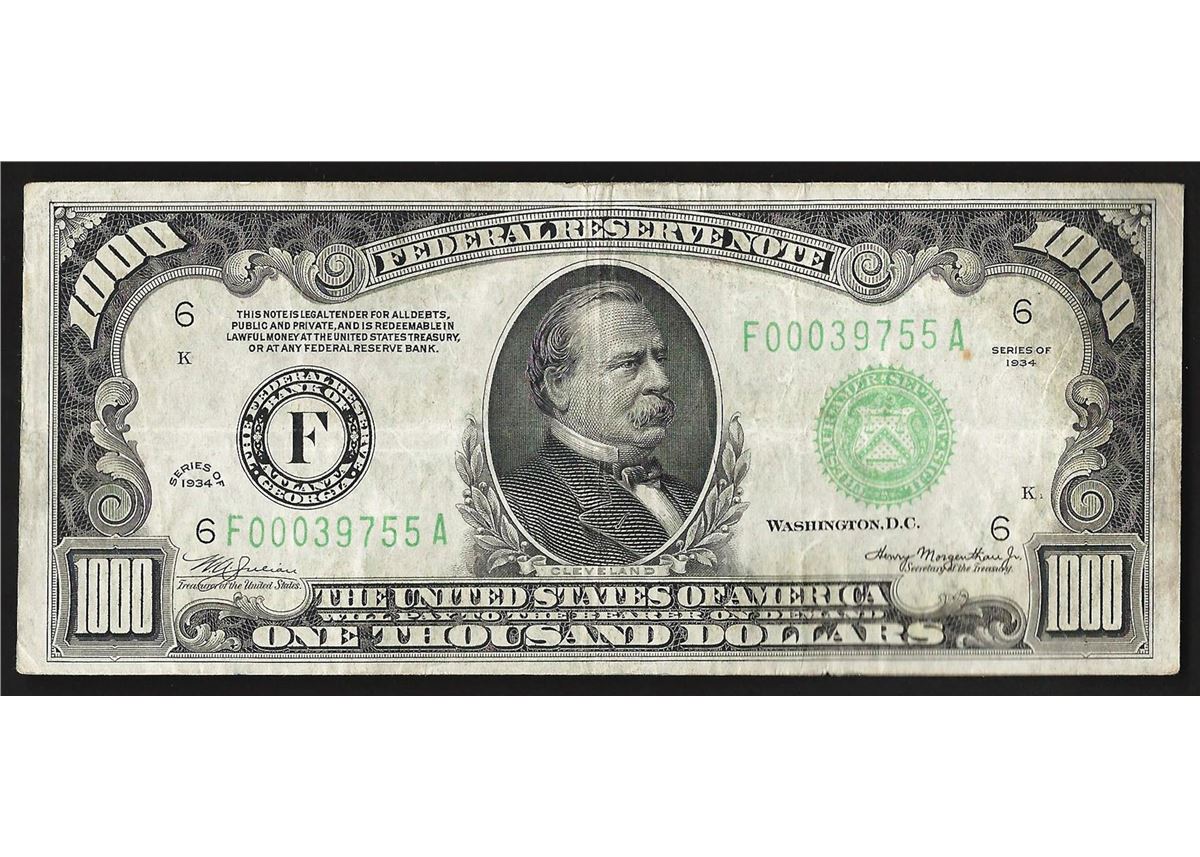 One 1934 $1,000 Federal Reserve Note Atlanta.
