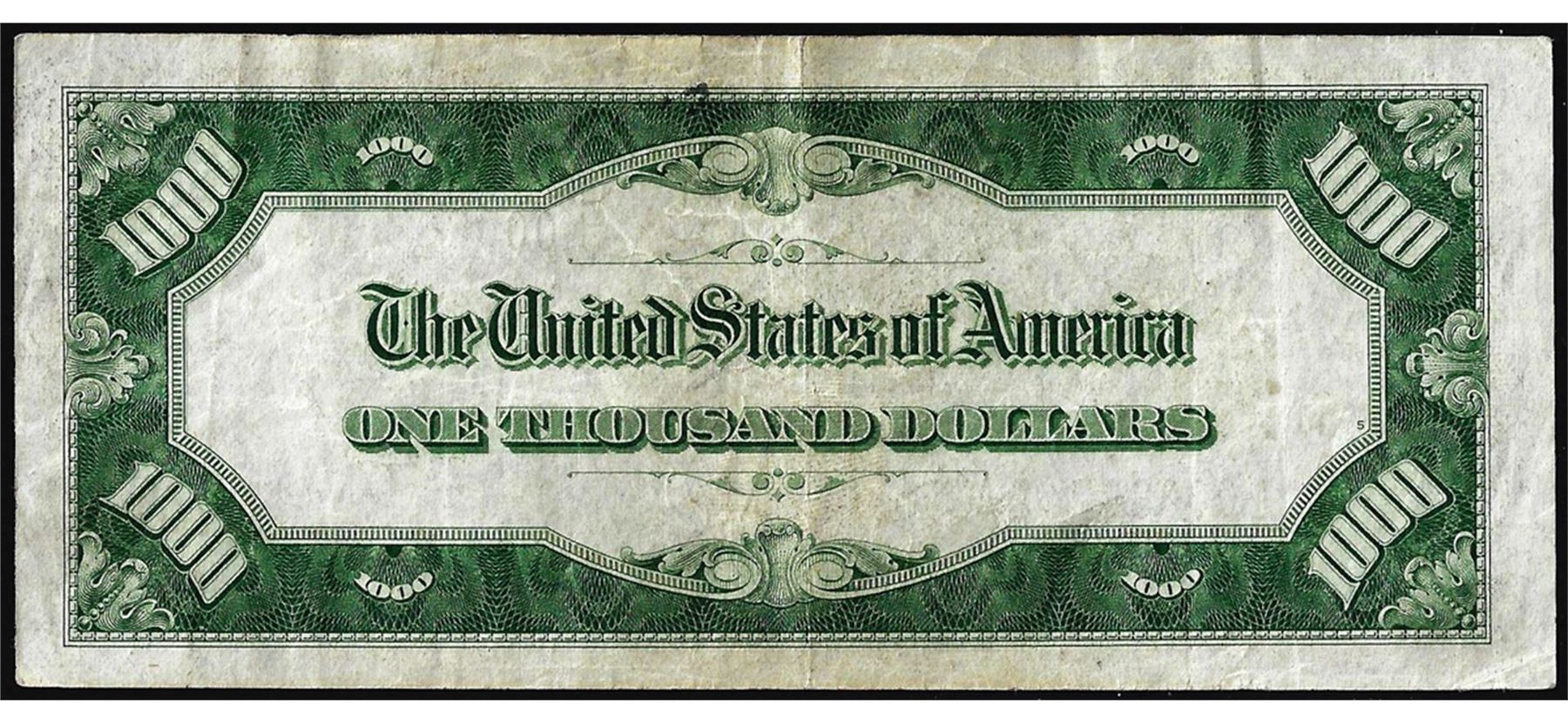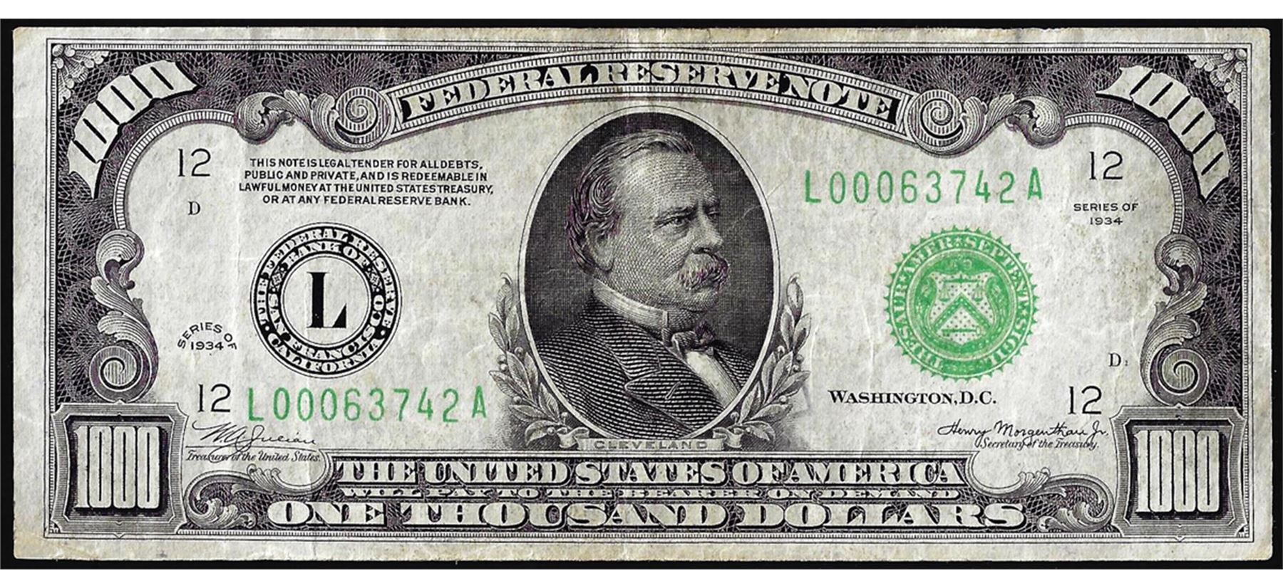 One 1934 $1,000 Federal Reserve Note San Francisco.