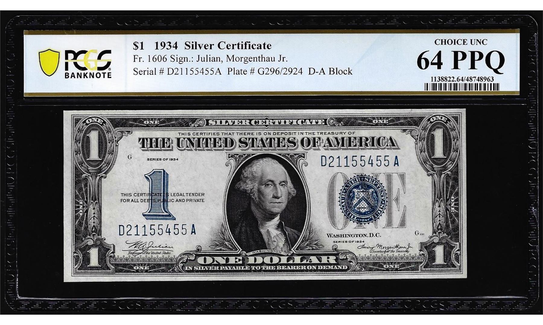 1934 $1 Funnyback Silver Certificate Note Fr.1606 PCGS Choice Uncirculated 64PPQ