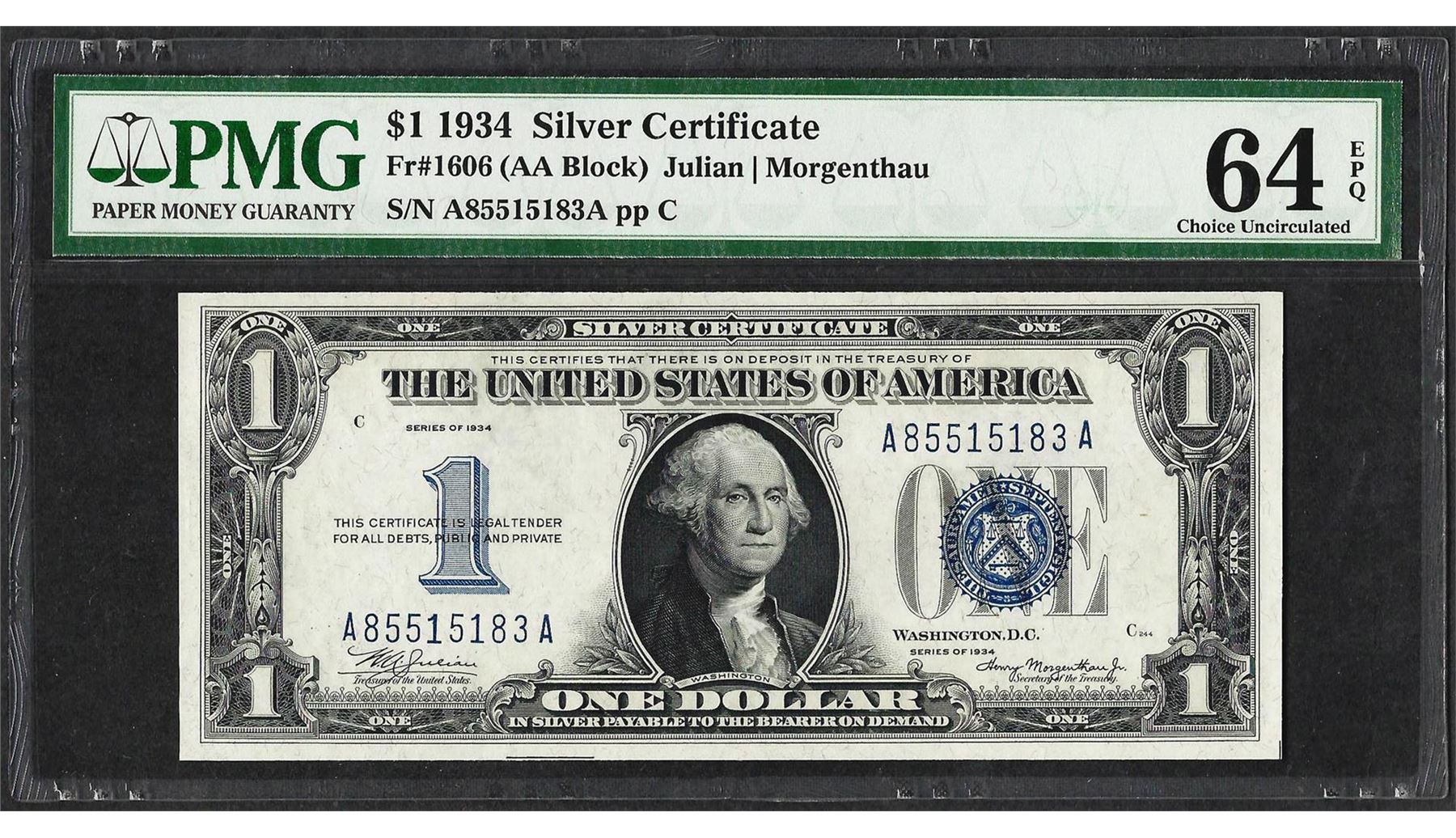 1934 $1 Funnyback Silver Certificate Note Fr.1606 PMG Choice Uncirculated 64EPQ