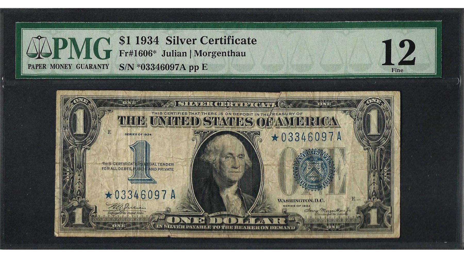 One 1934 $1 Funnyback Silver Certificate STAR Note Fr.1606* PMG Fine 12. PMG Certified.