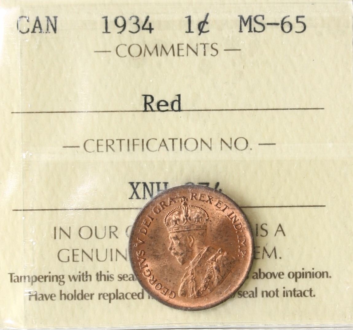 1934 1¢ ICCS Gem Mint State-65 Red A superb example in top condition.