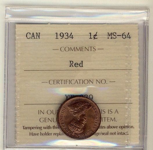 1934 1¢ ICCS MS64 Red