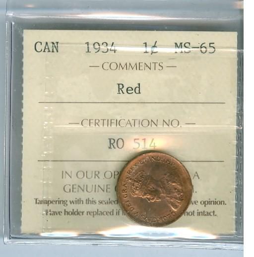 1934 1¢ ICCS MS65RD. 85% red with lustre.