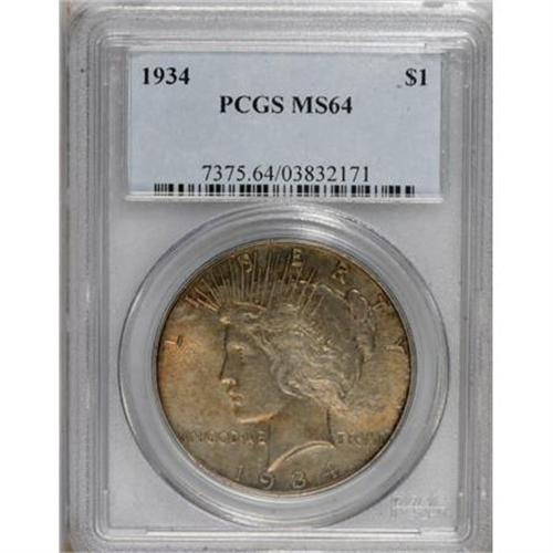 <B>1934 $1 MS64 PCGS.</B></I> PCGS Population (1254/600). NGC Census: (1125/331). Mintage: 954,057. Numismedia Wsl. Price for NGC/PCGS coin in MS64: $360. (#7375)<BR><BR><B>Coin Engraver:</B> Anthony de Francisci<BR><BR><b>Shipping:</b> Coins & Currency (<a target="_blank" href="http://www.heritageauctions.com/common/shipping.php">view shipping information</a>)