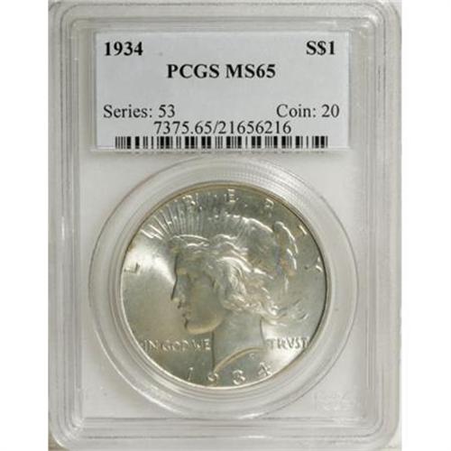 <B>1934 $1 MS65 PCGS.</B></I> A gorgeous apricot-gray Gem that possesses an exquisite strike, booming luster, and pleasing preservation. If not for a single wispy mark on Liberty's cheek, this outstanding late-date example would deserve an even finer grade.<BR><BR><B>Coin Engraver:</B> Anthony de Francisci<BR><BR><b>Shipping:</b> Coins & Currency (<a target="_blank" href="http://www.heritageauctions.com/common/shipping.php">view shipping information</a>)
