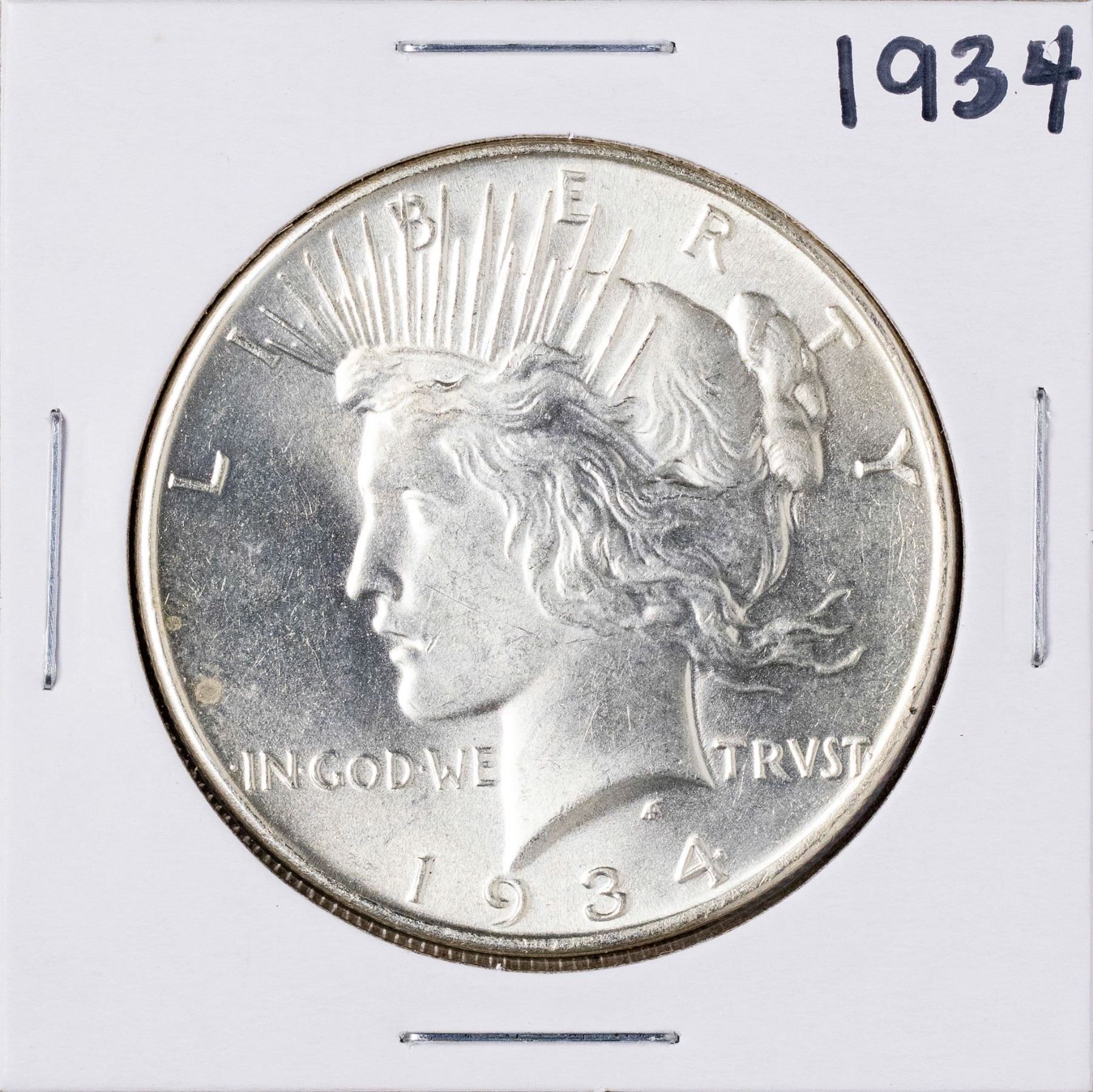 One 1934 $1 Peace Silver Dollar Coin.
