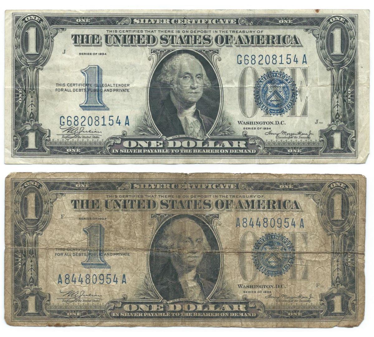One 1934 $1 Silver Certificate Currency Lot of 2.