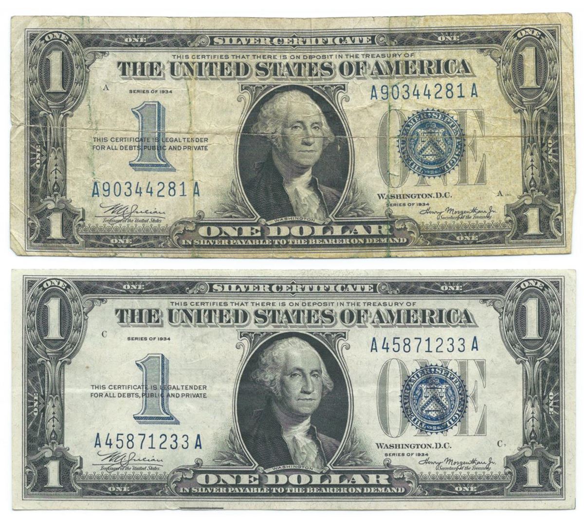 One 1934 $1 Silver Certificate Currency Lot of 2.