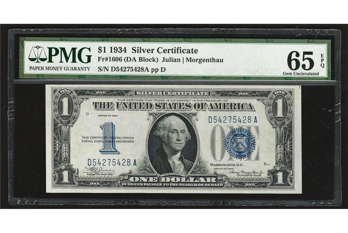 One 1934 $1 Silver Certificate Note PMG 65EPQ. PMG Certified.