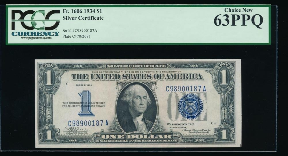 One 1934 $1 Silver Certificate PCGS 63PPQ.