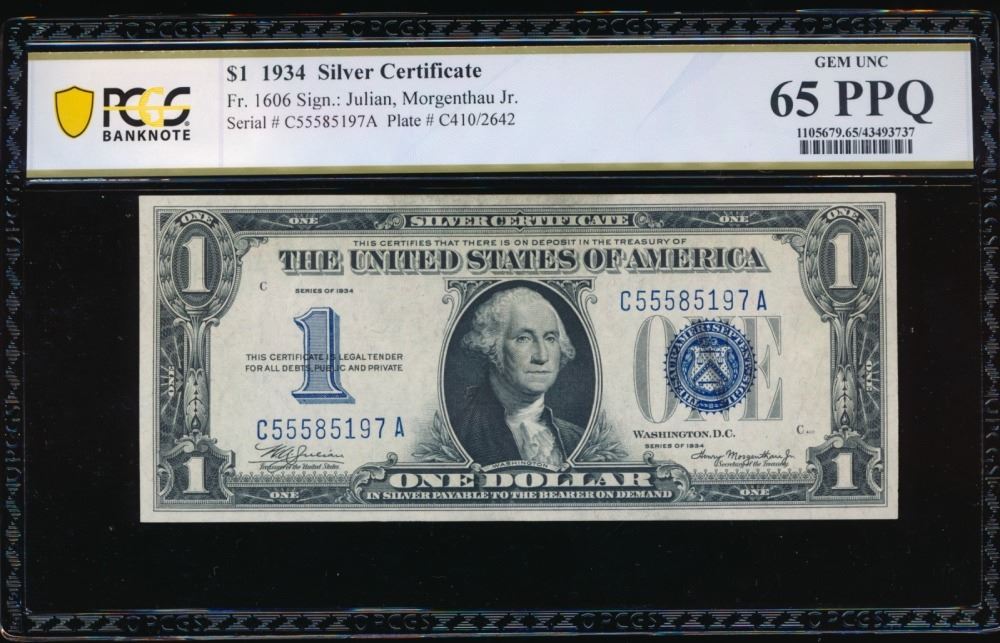One 1934 $1 Silver Certificate PCGS 65PPQ.