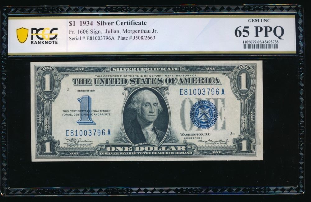One 1934 $1 Silver Certificate PCGS 65PPQ.