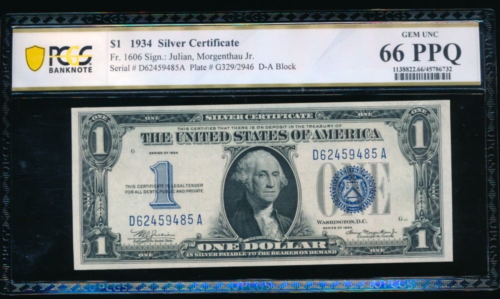 One 1934 $1 Silver Certificate PCGS 66PPQ.