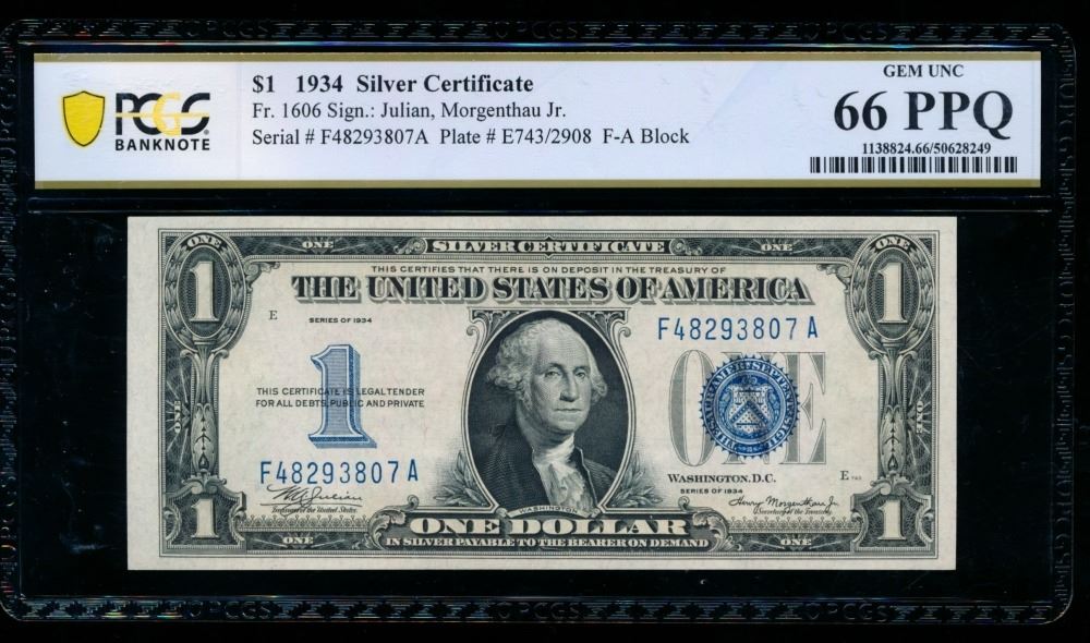 One 1934 $1 Silver Certificate PCGS 66PPQ.
