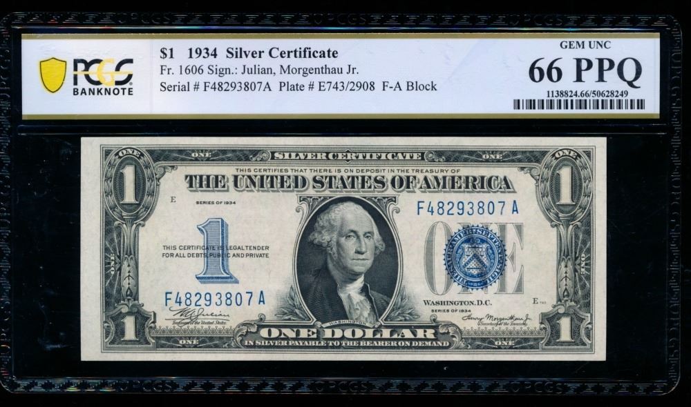 One 1934 $1 Silver Certificate PCGS 66PPQ.