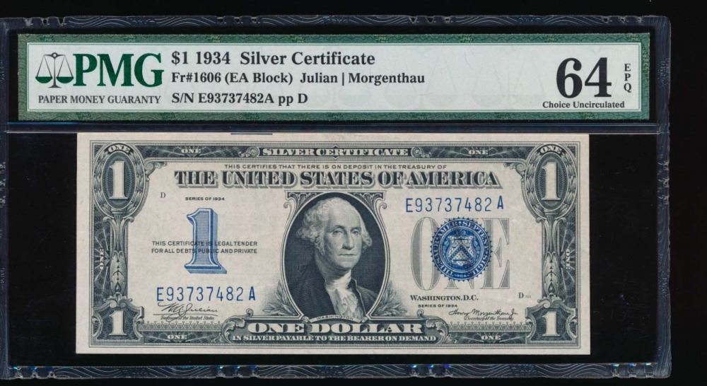 One 1934 $1 Silver Certificate PMG 64EPQ.