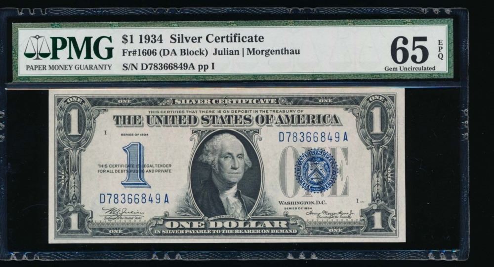 One 1934 $1 Silver Certificate PMG 65EPQ.